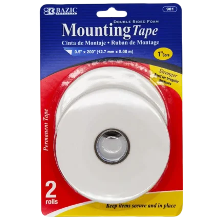 BAZIC Double Sided Foam Mounting Tape 0.5″ X 200″ (2 Pack)